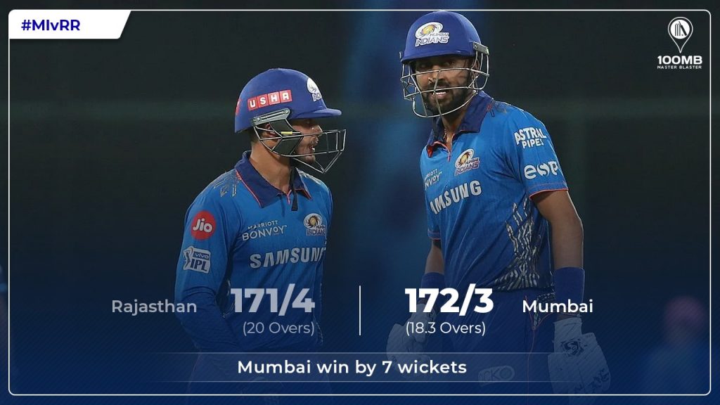 Batting first csk posted 189/4, courtesy a hundred from ruturaj gaikwad but rr gunned down the target with 15 balls to spare.